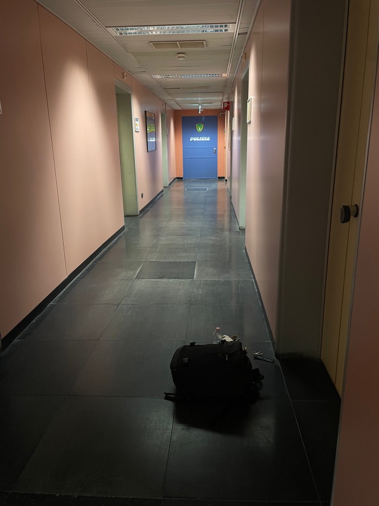 11:00 – Eric is woken by police (peep the door in the back) who tell him he can’t sleep there; Eric obliges as he doesn’t want to go to Italian prison (yet).